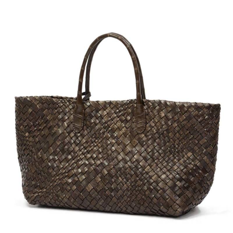 【FINAL SALE】FALORNI【ファロルニ】イントレチャートトートバッグ 1000C クロコダイルレザー ダークブラウン