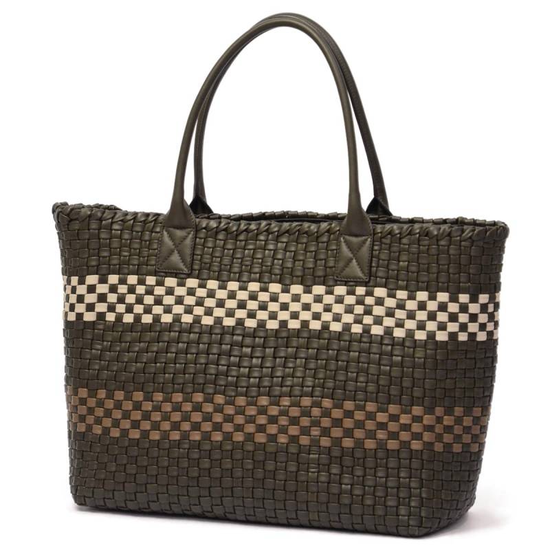 【FINAL SALE】FALORNI【ファロルニ】イントレチャートトートバッグ F2339 ボーダー ダークブラウン オフホワイト ブラウン