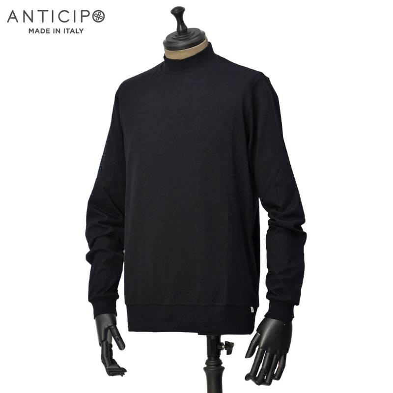 ANTICIPO【アンティチポ】モックネックカットソー FIANO LUNGO smooth 099 コットン ブラック