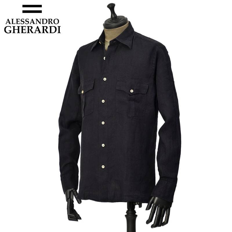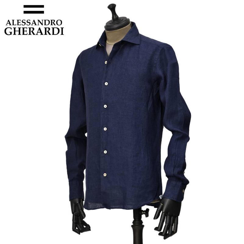 ALESSANDRO GHERARDI【アレッサンドロ・ゲラルディ】シャツ REGENT 7423 623 リネン ガーメントダイ ネイビー