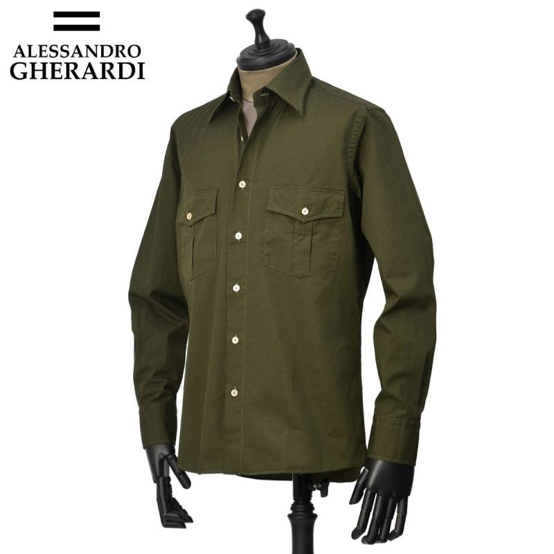 【FINAL SALE】ALESSANDRO GHERARDI【アレッサンドロ・ゲラルディ】ミリタリーシャツ ARMY C7200 730 コットン カーキ