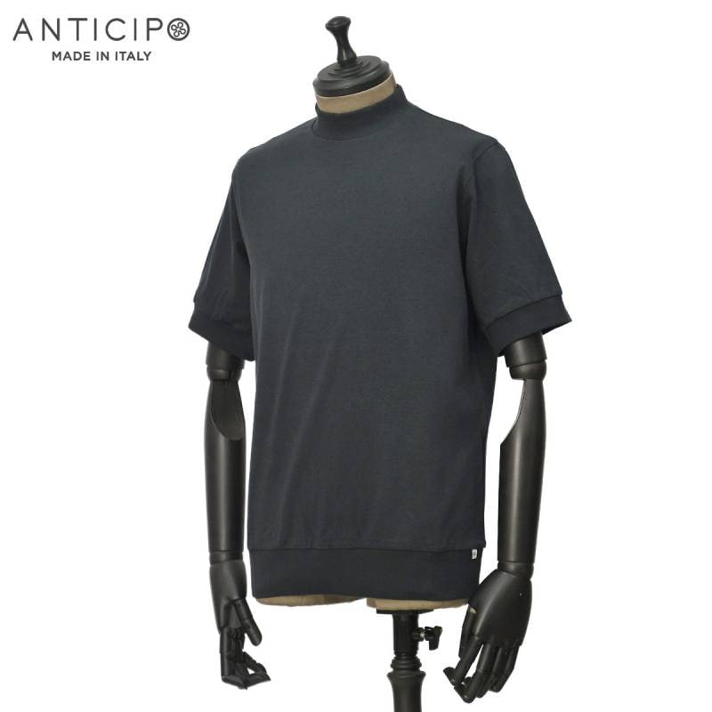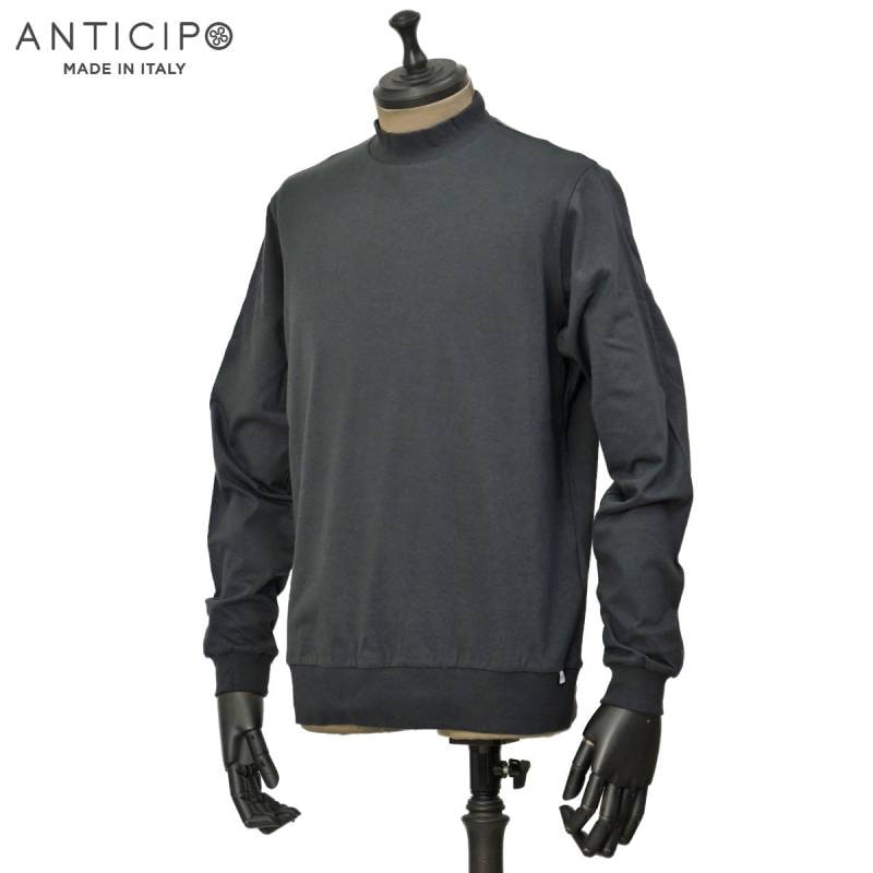 ANTICIPO【アンティチポ】モックネックカットソー FIANO LUNGO smooth 899 コットン チャコールグレー