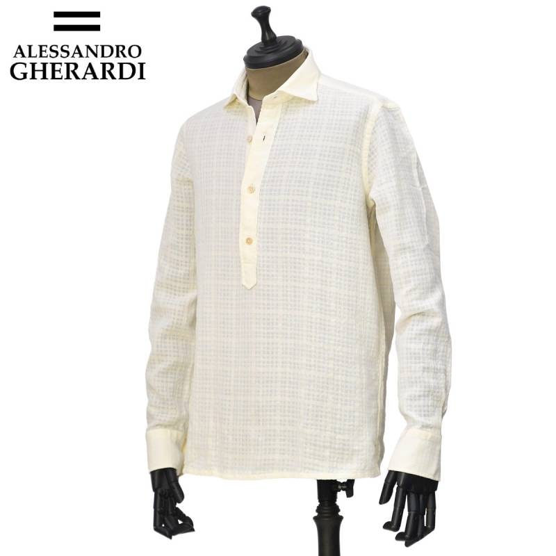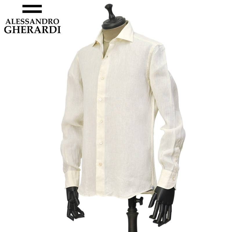 ALESSANDRO GHERARDI【アレッサンドロ・ゲラルディ】シャツ REGENT 7423 920 リネン ガーメントダイ アイボリー