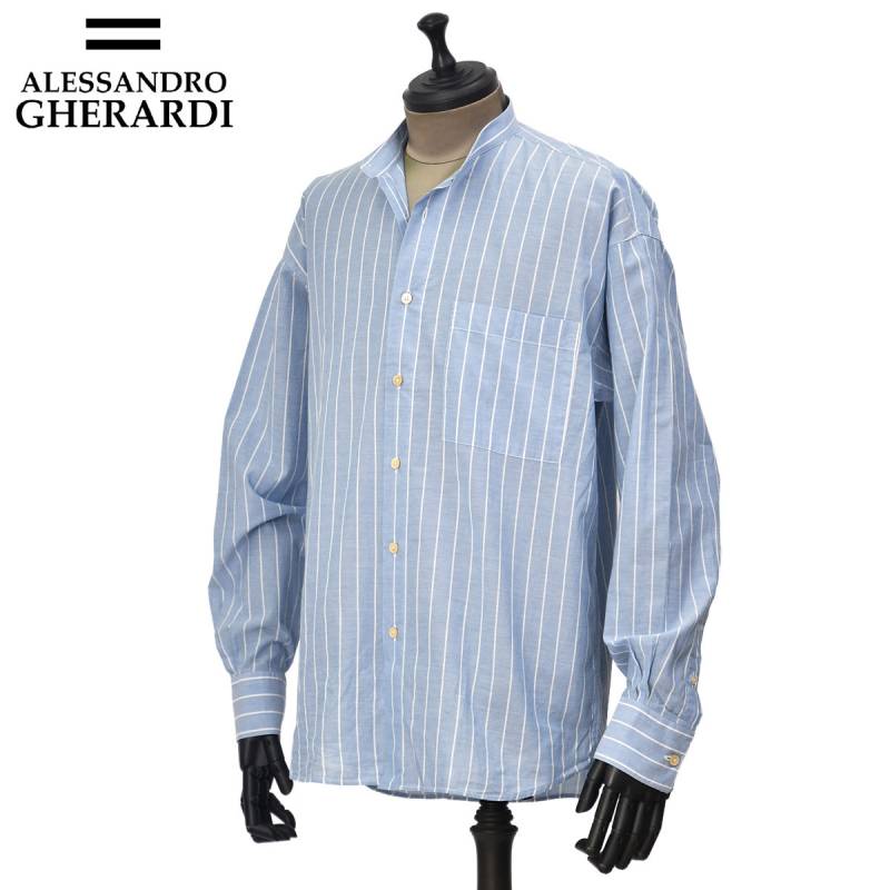 ALESSANDRO GHERARDI【アレッサンドロ・ゲラルディ】バンドカラーシャツ KORI 7401 621 コットン ストライプ サックスホワイト