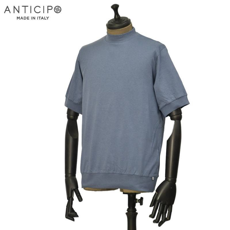ANTICIPO【アンティチポ アンティーチポ】モックネックカットソー FIANO smooth 660 コットン オフブルー