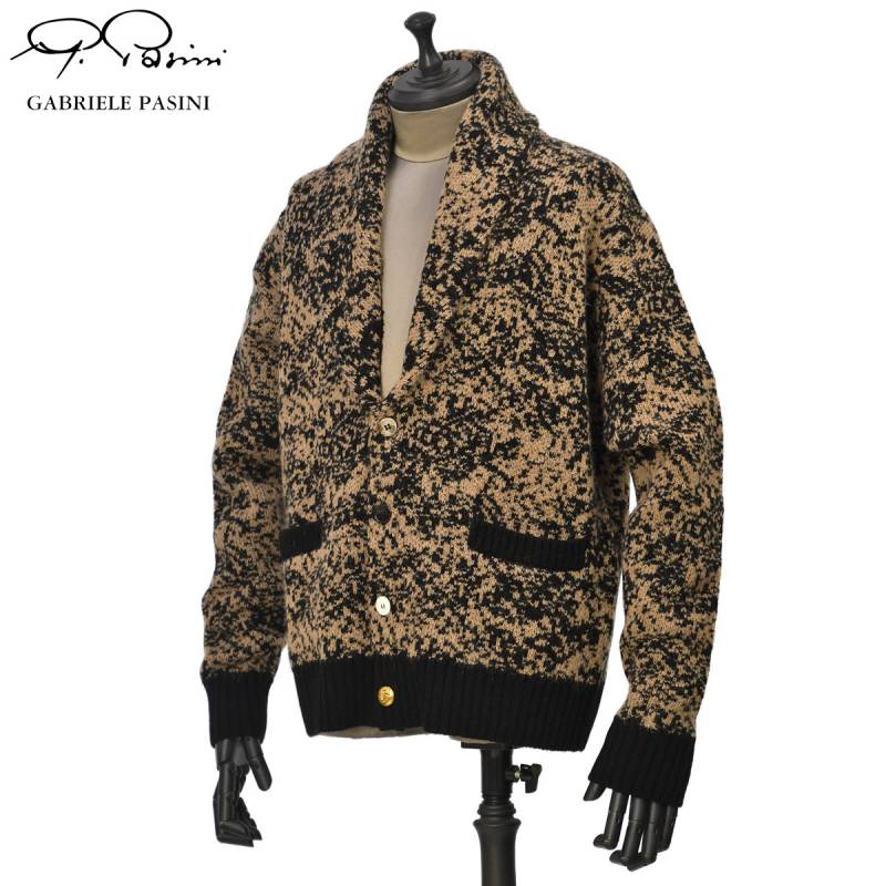 Gabriele Pasini【ガブリエレ パジーニ】ショールカラーカーディガン 6252 59542 1 ウール ナイロン ブラック キャメルブラウン