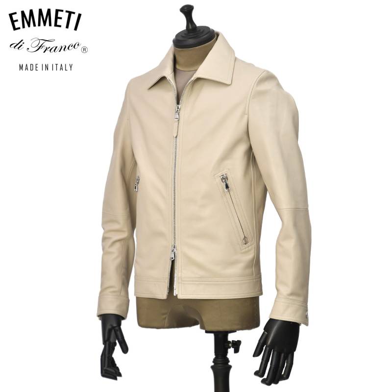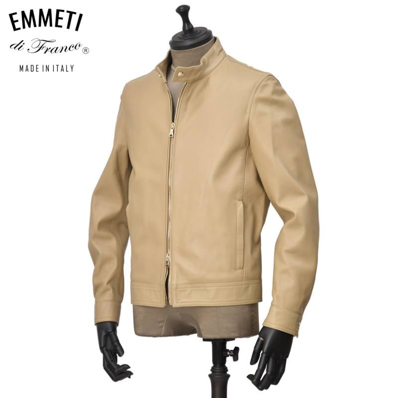EMMETI【エンメティ】襟付きシングルライダースジャケット GIACOMO SP LAMB SKIN NAPPA SABBIA ジャコモ ラムレザー ライトベージュ