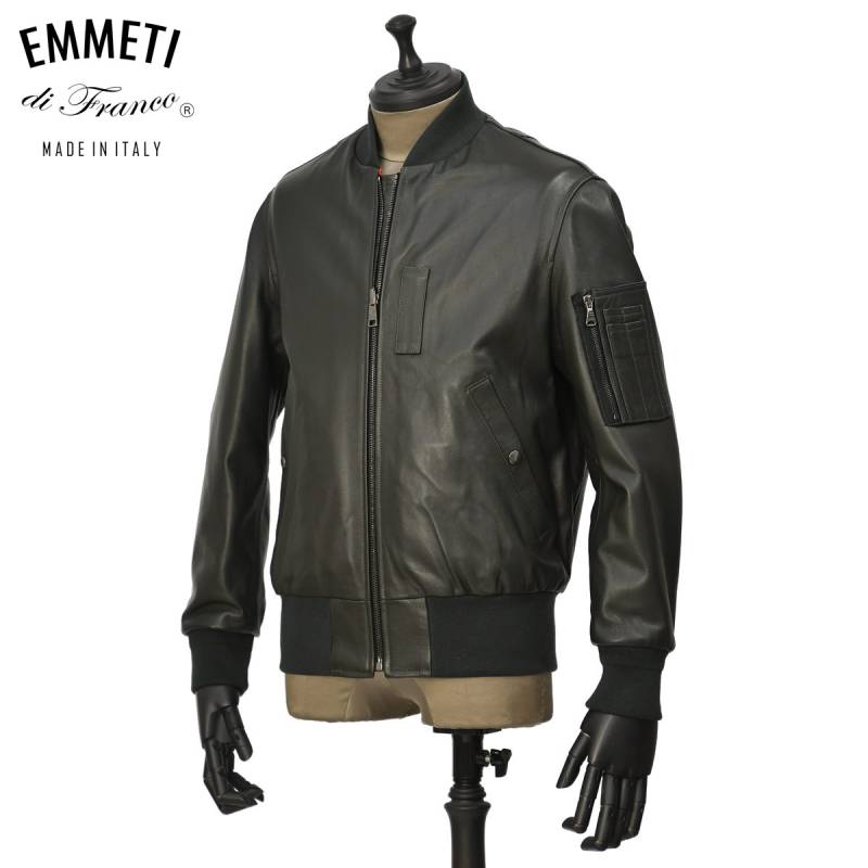 EMMETI【エンメティ】MA-1ブルゾン OLIVER SP LAMB SKIN NAPPA CERATA VERDE オリバー ラムレザー ディープグリーン