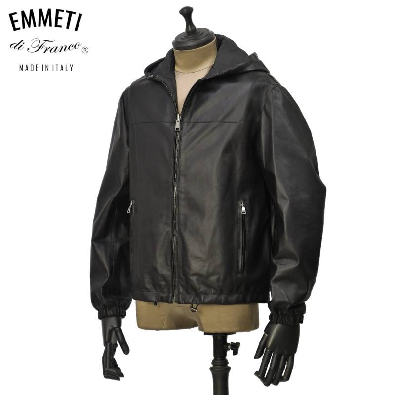 EMMETI【エンメティ】リバーシブルジップアップパーカー LUCA Reversible SP LAMB SKIN NAPPA RIBA NERO ルカ ラムレザー ブラック