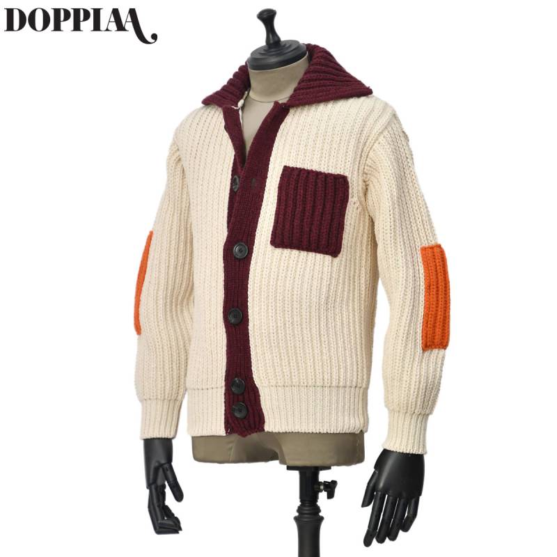【FINAL SALE】【size44,48】DOPPIAA【ドッピアアー】ニットブルゾン AANICE R7800 02 PIANNA ウール ポリアミド オフホワイト ボルドーオレンジ