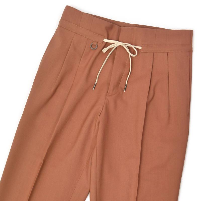 【FINAL SALE】BE’ABLE【ビーエイブル】2プリーツ ドローコードパンツ ERICK WBS-W22 CLIPRA ミリタリー ウール ポリエステル ポリウレタン サーモンピンク