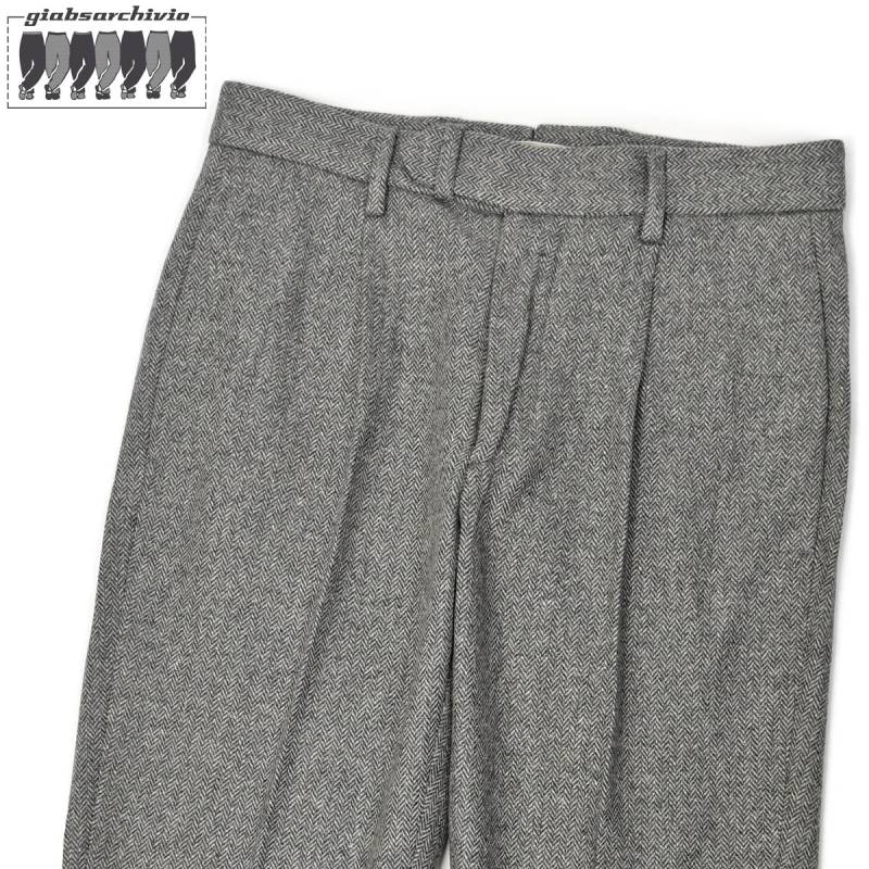 giab's ARCHIVIO【ジャブス アルキヴィオ】ワンプリーツパンツ DANTE 700 P A26125 43 ウォッシャブルシルキーウール ヘリンボーンストライプ グレー