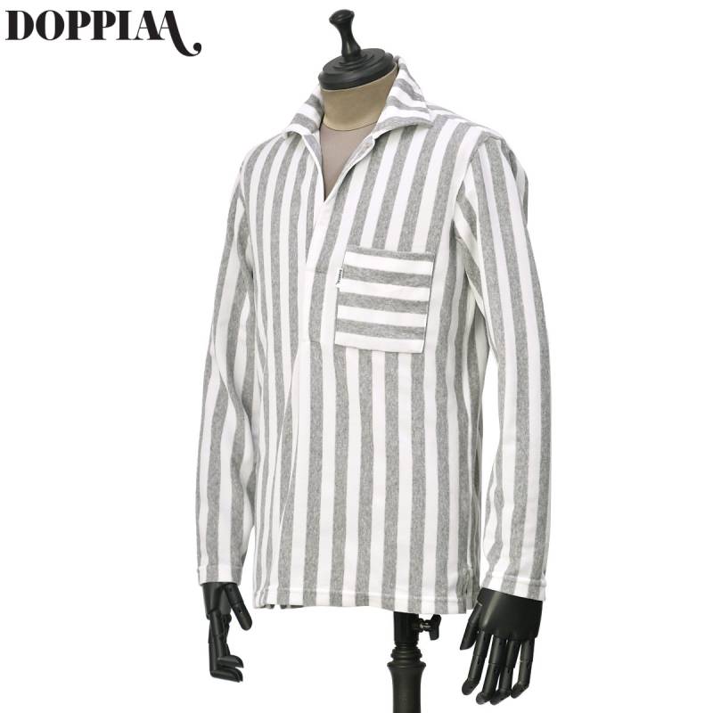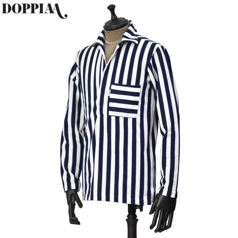 【FINAL SALE】DOPPIAA【ドッピアアー】スキッパーポロシャツ AALICE V4406 0121 BIANCO E BLU パイル地 ポリエステル コットン ストライプ ネイビー