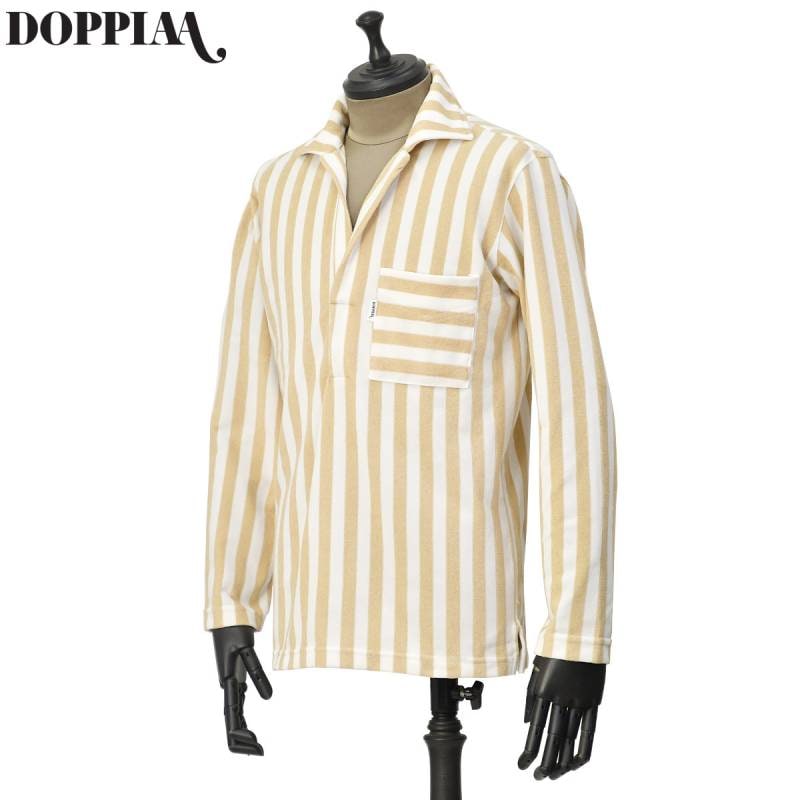 【FINAL SALE】DOPPIAA【ドッピアアー】スキッパーポロシャツ AALICE V4406 0115 BIANCO E BEIGE パイル地 ポリエステル コットン ストライプ ベージュ