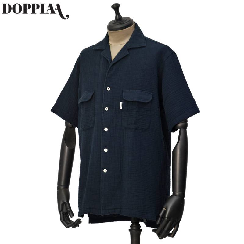 【FINAL SALE】DOPPIAA【ドッピアアー】半袖パイロットシャツ AAMBALA V7326 20 BLU MARINE パイル地 コットン ネイビー