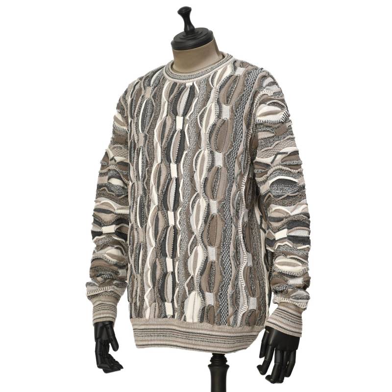 【FINAL SALE】MONTECHIARO【モンテキアーロ】クルーネック3Dニット 30069610L 310 ウール アクリル グレージュ ホワイト
