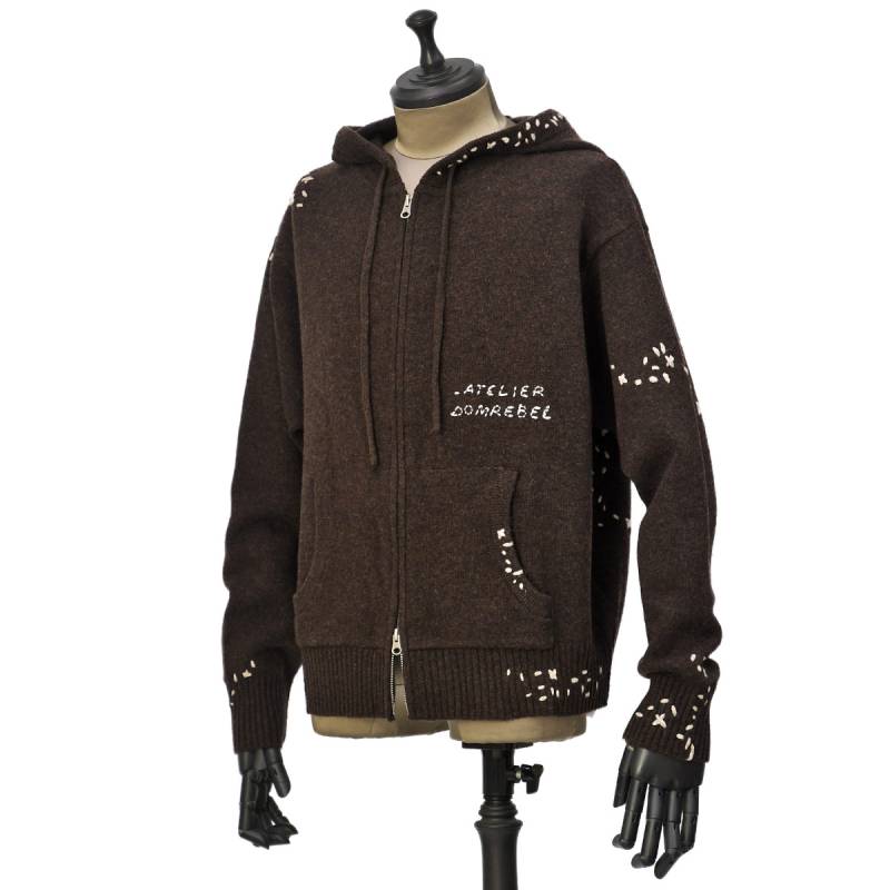 DOMREBEL【ドムレーベル】ジップアップニットパーカー OFFICE KNIT ZIP HOODIE BROWN ウール ブラウン