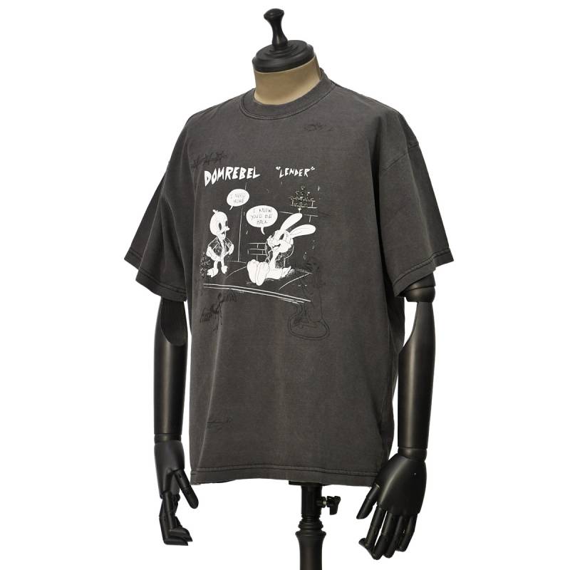 DOMREBEL【ドムレーベル】プリントTシャツ LENDER T SHIRT CRYSTALS FEDED BLACK コットン ラインストーン ヴィンテージブラック