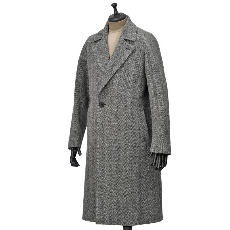 HEVO【イーヴォ】セミダブルコート SURBO 170 I749 2519 ウール ヘリンボーン ブラック グレー