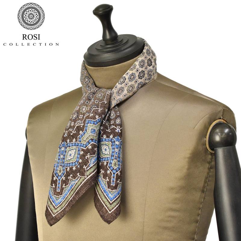 Rosi collection【ロージィ コレクション】ネッカチーフ TOKYO 501 02 コットン シルク 小紋 ブラウン