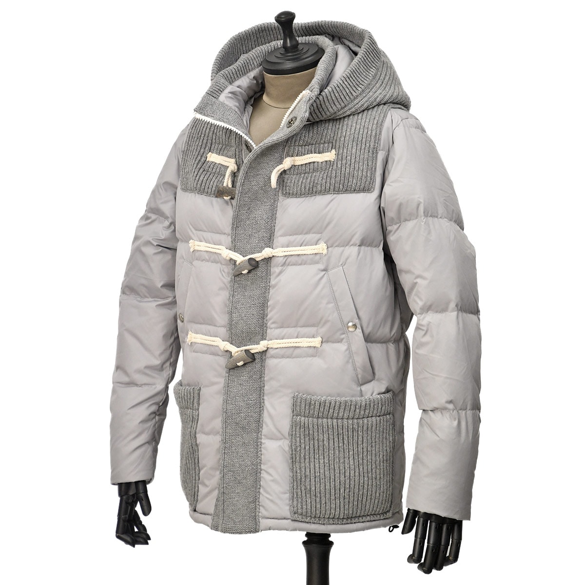 高級ダウン素材(80/20)を増やすことで軽量化しながら特徴的な部分使いニットとのデザインバランスで独自の世界観を表現。 スーツ、ジャケットのアウターとして、またカジュアルな着こなしのアウターとして、あらゆるシチュエーションに対応可能な万能コート。 トグル部分は天然水牛の角を使用し、一点ずつ存在感と個性があり表情も楽しめます。