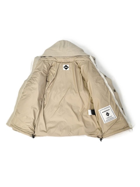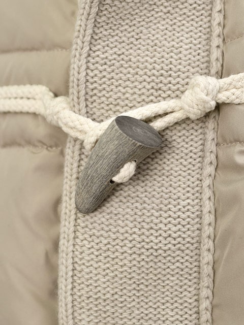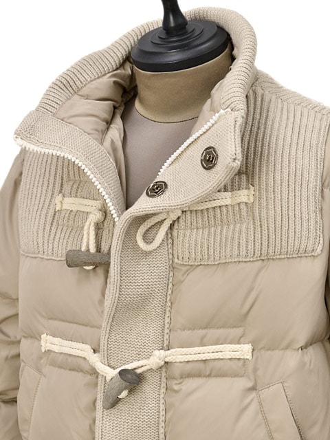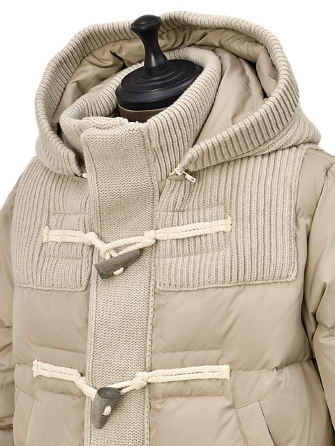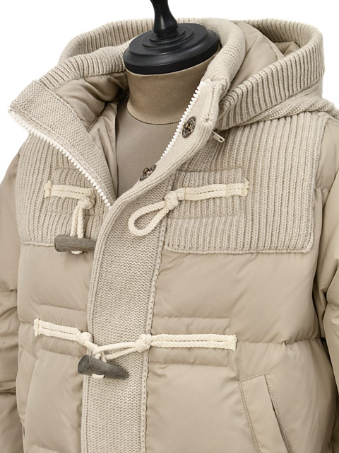 表地:ポリエステル100% (ニット部分)ウール100% 中綿:ダウン80%フェザー20% 別布:ウール80%ナイロン20% 裏地:ポリエステル100% トグル:水牛 |