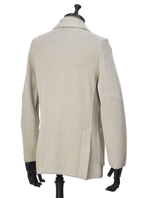 “Advanced Sartorial Concept”をテーマに掲げ、伝統的なマテリアルや仕立て技術だけにこだわらず、その時代性にマッチしたアイテムを展開するFinjack【フィンジャック】よりニットジャケットのご紹介です。ニットとテーラードの技術をミックスした美しい1着。従来のニットジャケットでは表現されていなかったテーラードの概念を持ったニットウェアで、何種類もの機械を使い分ける編み立ての方法、副素材の使用法、パターンワーク、縫製方法は従来型のテーラードの製法でもなくニットの製法でもない独自の製法を採用し、テーラードジャケットの様な見た目でありながら、カーディガンの様な軽い着心地を実現。限りなくテーラードジャケットに近い仕上がりのため、カジュアルスタイルはもちろん、ネクタイをしたドレススタイルも楽しめる非常に汎用性高いアイテムとして重宝できます。春先から活躍するコト間違いなし。細身のパンツからワイドパンツにも相性が良く、ジャケットだけどリラックスした空気感を演出し、ニットらしい落ち着いた大人の印象です。このクオリティでこの価格ですから、ご検討いただく価値は十分にございます。是非、ご検討くださいませ。