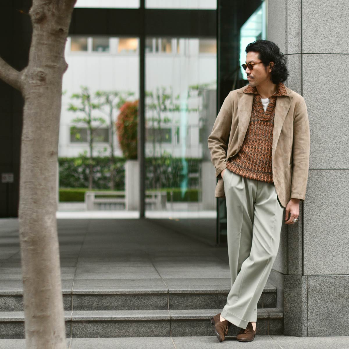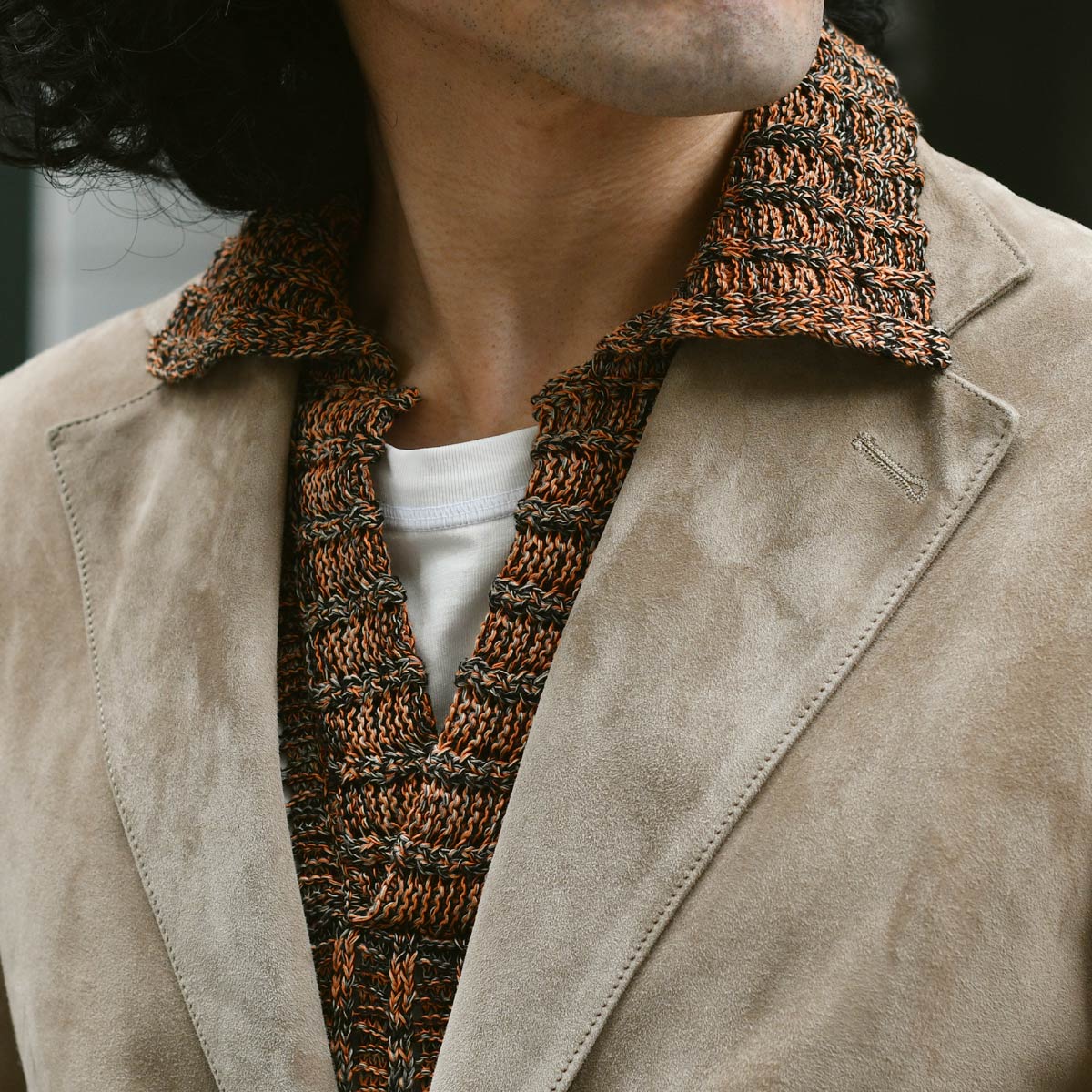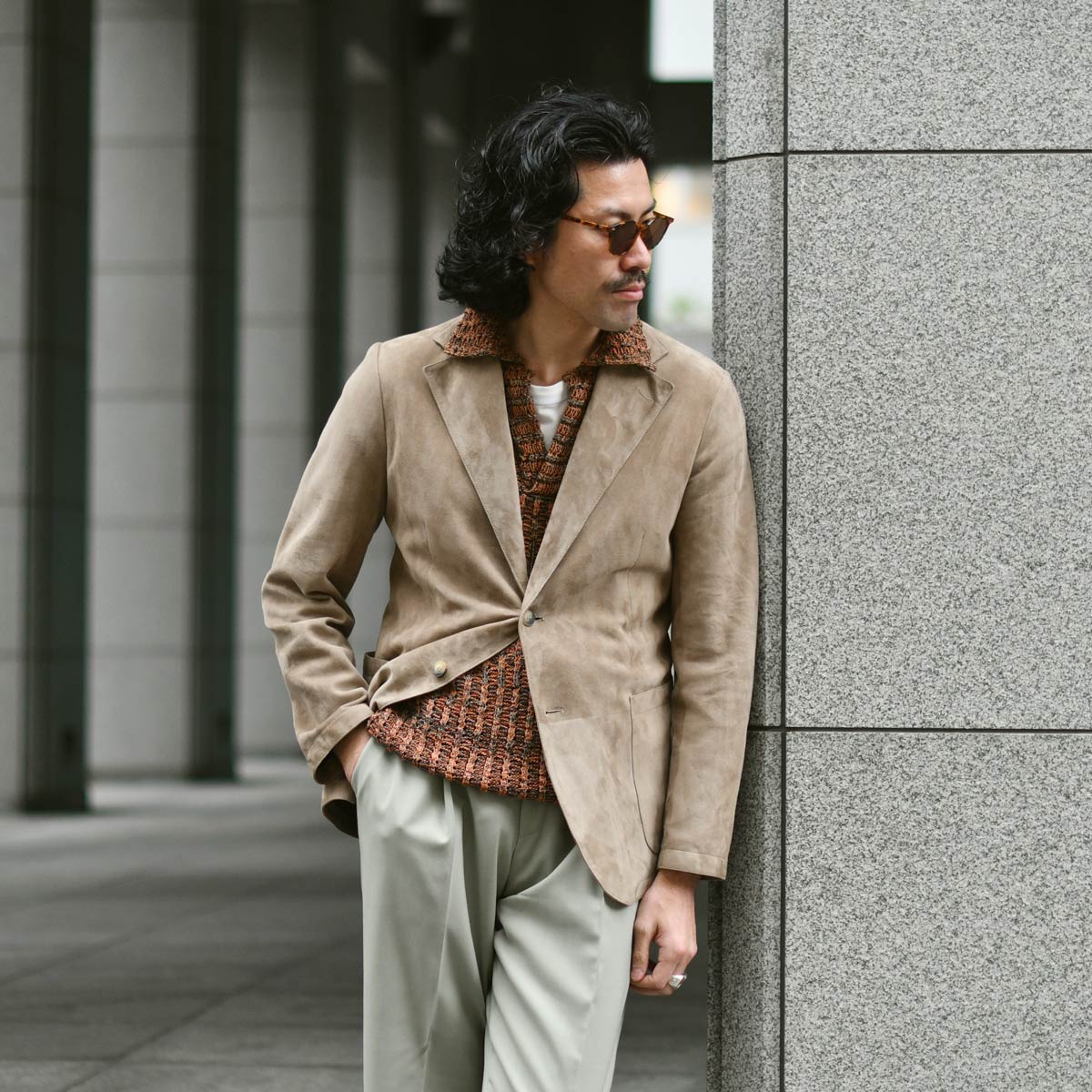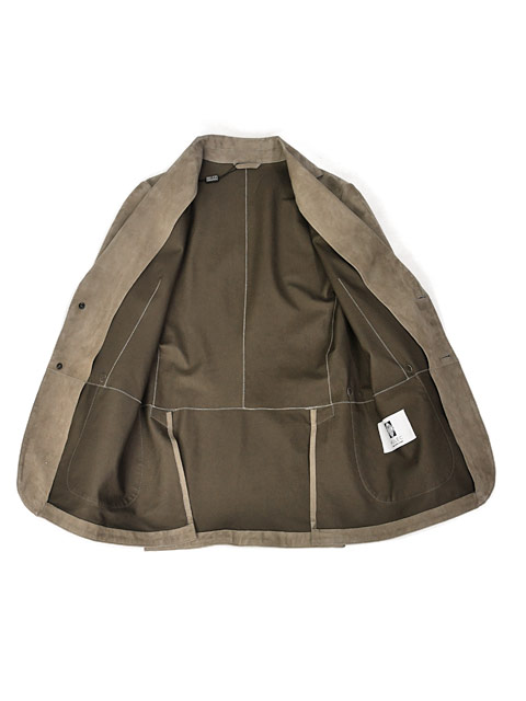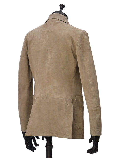 今回ご紹介するのは、MOLEC【モレック】シングルジャケットをご紹介致します。なめらかで薄くソフトな最高のスエード素材で仕立てたテーラードジャケットです。きめ細かなスエードの裏側には通常の革衣料の仕上げとは違い、非常に薄いポリウレタンのフィルムをボンディングするという、最新のレザー技術を使用しています。この技術により、革製品特有の色落ちの問題をかなり軽減し、袖を通した際のインナーの滑りが非常になめらかになり、アンライニング仕上げとは思えない素晴らしい着用感です。ラペルの返りやフロントカットが綺麗に開くようにラウンドも微調整を何度も繰り返し、スタイリッシュで洗練されたデザインが完成しました。サルトリア仕立てのような最高のスエードジャケットです。そして、熟練の職人がスエード鞣しと美しいバフ仕上げを施した床面。素晴らしい上質な滑らかさと風合いに加え、撥水性と強い耐久性を持ち合わせた、一生モノの最高のレザージャケットです。上質スエードが醸し出す柔らかな雰囲気と素材そのものの滑らかさ、フィッティングはタイト過ぎず、緩過ぎずの絶妙のサイズ感になっており、シャープなラインを出しながらも着用感はリラックス感があるといったところです。余計な装飾は省き、シンプルなデザインが落ち着いた大人のジャケットに仕上がりました。