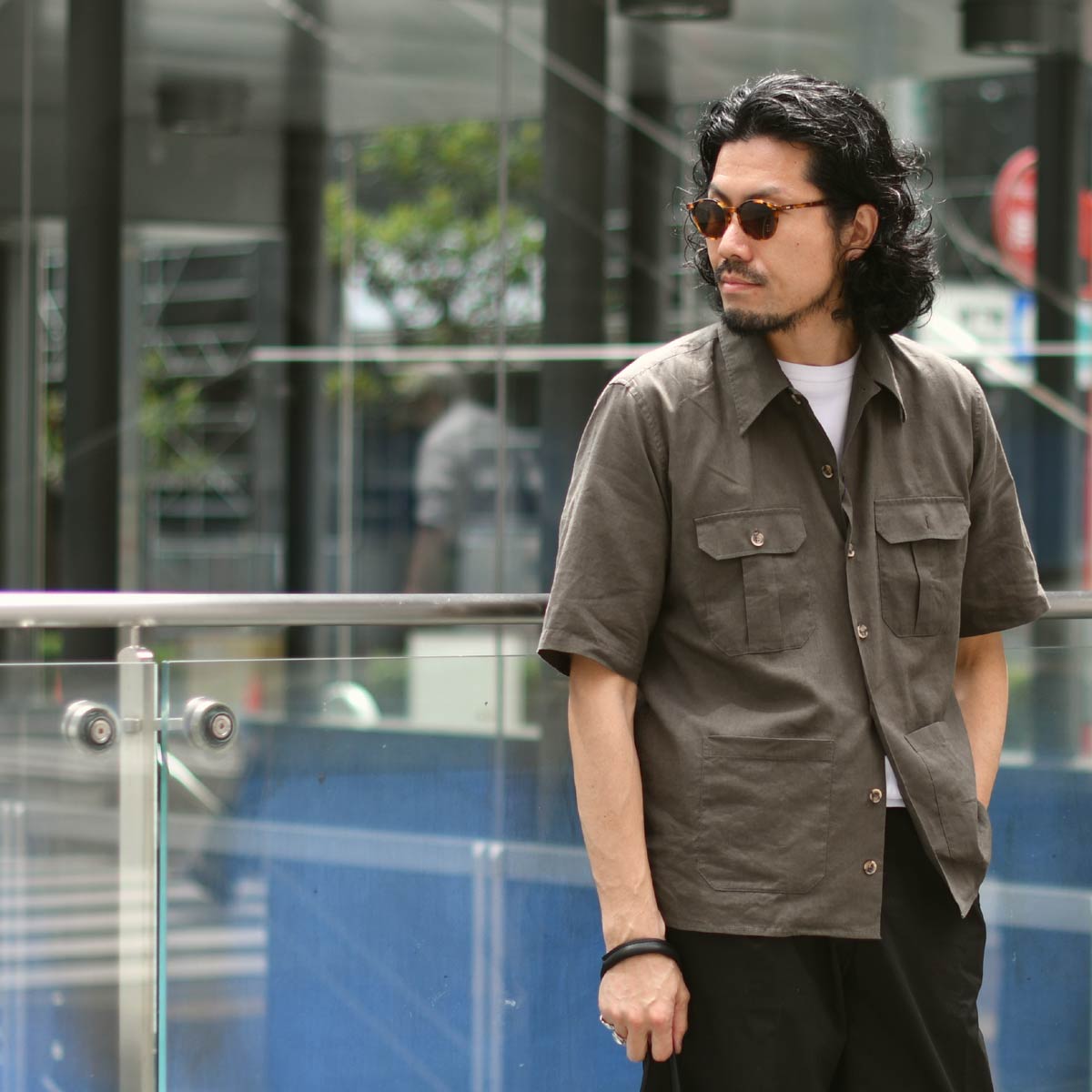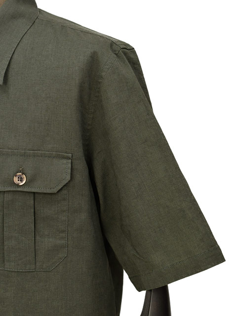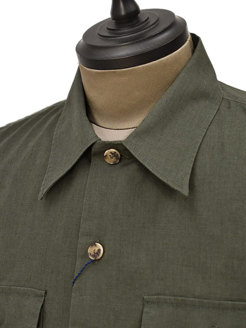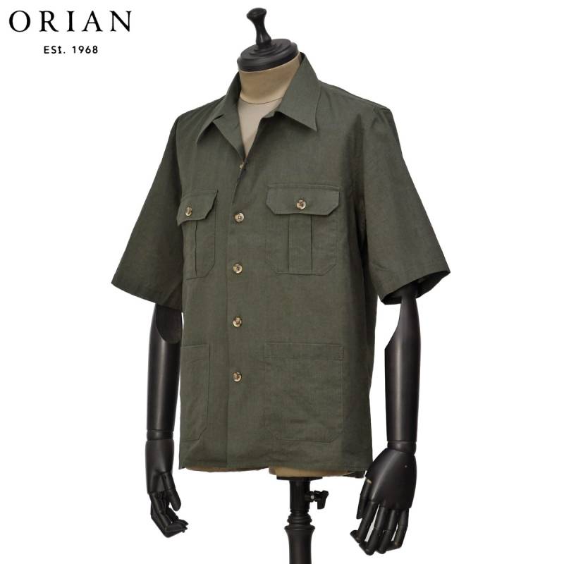 今回ご紹介するのはイタリアを代表するシャツブランドORIAN【オリアン】より洗いのかかったリネン&コットン生地を使用した半袖シャツブルゾンのご紹介です。オープンカラーにやや大きめのポケットが印象的なデザイン。フィッティングはややゆったりとしており、カットソーの上から羽織るブルゾンとしては最適な雰囲気。リネンコットンの生地がカジュアルスタイルをよりリラックスなムードへと近づけてくれます。半袖ながらアウトポケットのディテールを用いたアウター顔のデザインは、夏の涼しいアウターとしての活躍が期待できます。少し動きのあるイージーなパンツに合わせて夏の着こなしの幅を一気に広げてくれる、そんなアイテムではないでしょうか。オープンカラーシャツにポケットをつけてサファリジャケットの様にリモデルさせた弊店別注モデル。ボタンもアウター感覚で着れるよう大きめをセレクト。コストパフォーマンスも魅力的でお色違いで複数枚お持ち頂いても、末永くご利用頂ける価値ある1着です。是非、お早目にご検討くださいませ。