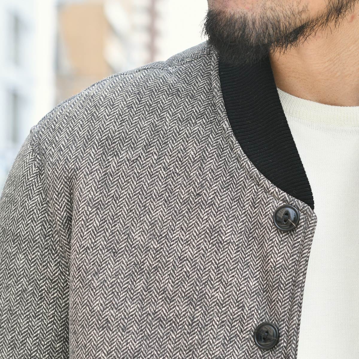 形はヴァルスターブルゾン型のクラシカルな1着。リブタイプの首元でどこかスポーティさも感じさせるモダンなデザイン。
