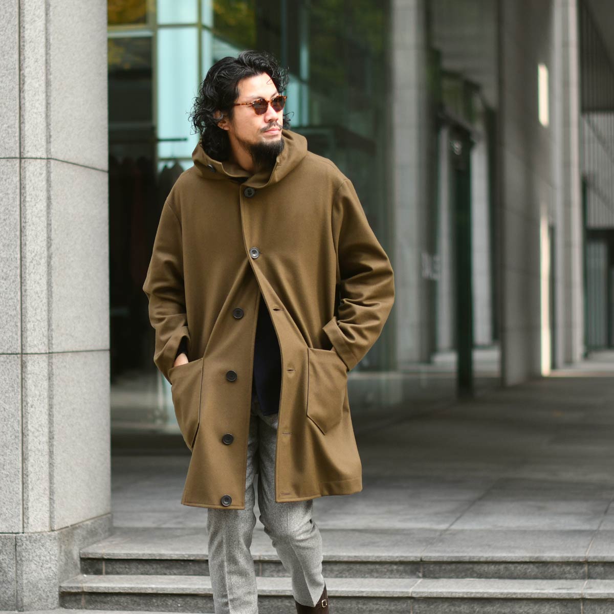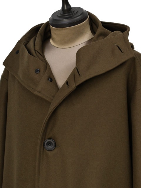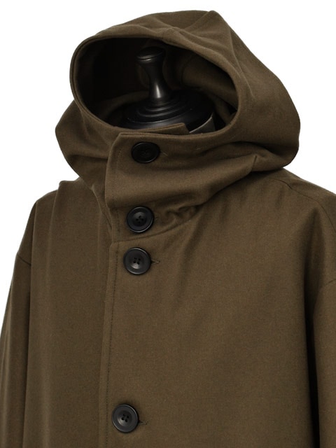 今回ご紹介するのは、長い歴史を持つイタリアの老舗ブランドBARENA【バレナ】から派生し、その伝統を受け継ぐCINI【チニー】よりフーデッドコート"Mod.1"で御座います。11~13世紀に十字軍が着用していた労働者のコートがデザインベースとなった一着。非常にユニークなデザインは他に類を見ない雰囲気が漂います。たっぷりとしたフードや釦が上部まで配された特徴的なディテールは、夜の寝袋を兼ねたデザインです。また、内ポケットの内部には小ぶりなポーチが付いており、コートを着用したままポーチの取り出しが出来る便利な仕様。ドロップショルダーに加え、アームホールは広くゆったりしており、袖口にかけてテーパードしたリラックスバランス。身幅も大きくゆとりを持たせたオーバーサイズシルエット。約10世紀の時を経て現代のファッショントレンドに落とし込んだ一着です。柔らかく肌触りも良い良質なヴァージンウールを使用。通常のウールに比べ保湿や防水にも優れており、軽く着心地の良さも感じられます。唯一無二のデザインは他と差をつける洒落感抜群の一着。ブランドの世界観を存分に感じて頂けます。この機会に是非、CINI【チニー】フーデッドコート"Mod.1"をご愛用してみては如何でしょうか。