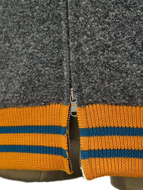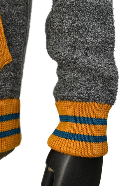 GALLIA KNIT PROJECT【ガリア ニットプロジェクト】ジップアップニット スタジャン SHERIDAN U7488 028 ウール 7G グレー マスタード
